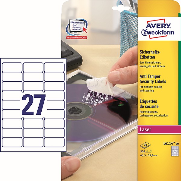 Etykieta Avery 63,5x29,6 A4 (a"20ark) LK do plombowania L6114
