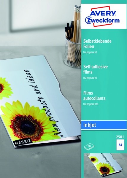 Folia INK przeźroczysta A4/50 samoprzylepna Avery 2501
