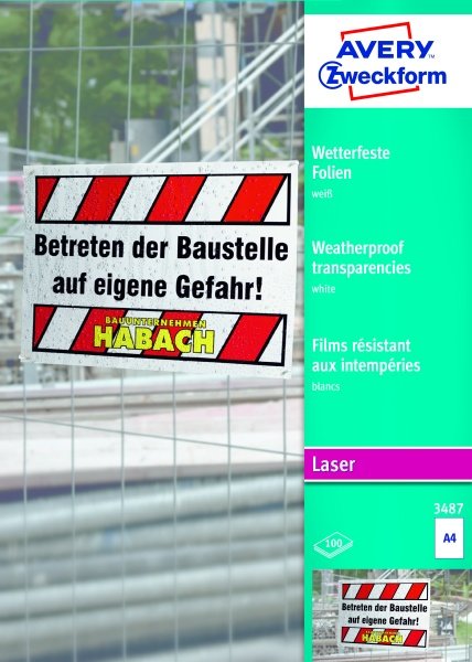 - Biała folia o kodzie 3487 dedykowana jest do zastosowań zewnętrznych (wytrzymała, nierozpuszczalna w wodzie, odporna na zmiany temperatur i nieżółknąca).