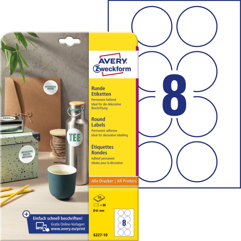 Etykiety okrągłe Avery Zweckform, A4, 10 ark./op., ¤65 mm, białe, trwałe