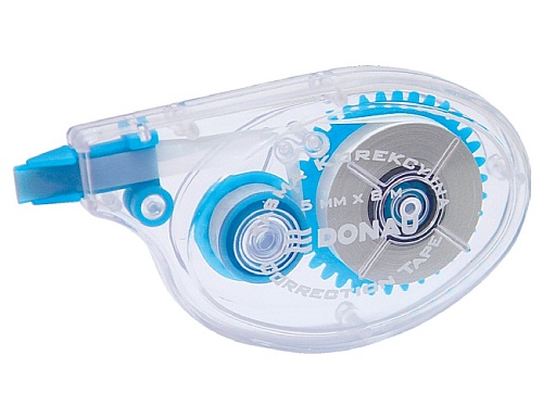 Do wszystkich rodzajów papieru. Prosty i bezpieczny w użyciu, suchy i czysty w zastosowaniu, nietoksyczny. Wymiary taśmy korekcyjnej 5 mm x 8 m.