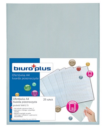 Wykonana z twardej folii PCV o bardzo wysokiej przezroczystości, zgrzana w literę L. Jednostka sprzedaży 1 szt. Opakowanie zbiorcze 25 sztuk.