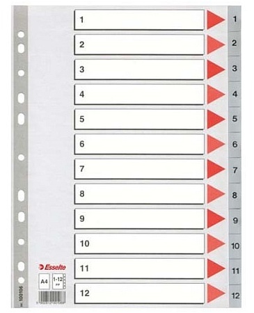 Przekładki A4 1-12 Esselte 100106 f/num plastikowe szare
