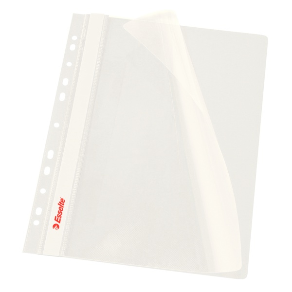 Skoroszyt formatu A4 z paskiem multiperforowanym umożliwiającym wpięcie do każdego rodzaju segregatora. Wysuwany, papierowy pasek do opisu zawartości. Wykonany z folii PP.
