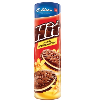HIT to dwa kruche ciasteczka połączone pysznym nadzieniem w czterech wariantach smakowych. Waniliowe. 250 g w opakowaniu. Jednostka sprzedaży: 1 opak.