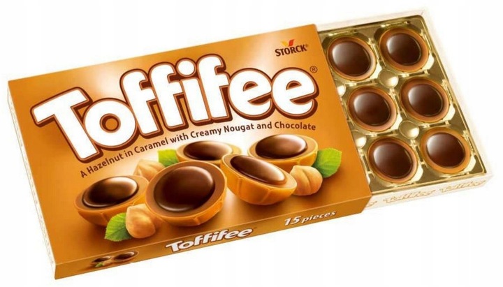 Toffifee to pyszna pralinka z bogatym wnętrzem. Chrupiący orzech laskowy w przepysznym karmelu, z kremem nugatowym, pokryty odrobiną deserowej czekolady. Producent: August Storck KGMarka: ToffifeeWaga: 125 gIlość: 15 szt.