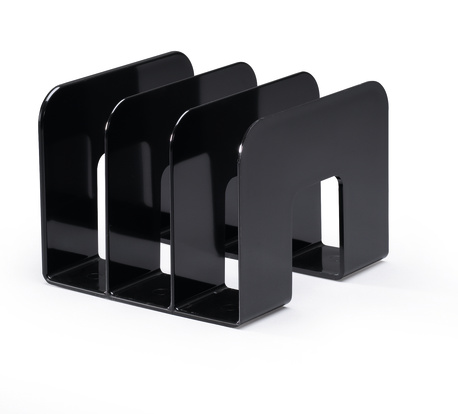 Stojak na katalogi z trzema przedziałami o szerokości 65 mm do większej ilości czasopism lub dokumentów.Wymiary: 215x165x210 mm (SxWxG).