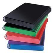 Wytłoczona faktura lnu. Twarda tektura 1210 g. Szerokość grzbietu 35 mm. Boki wykonane z tworzywa. Format A4. Kolor czerwony. Jednostka sprzedaży 1 szt.
