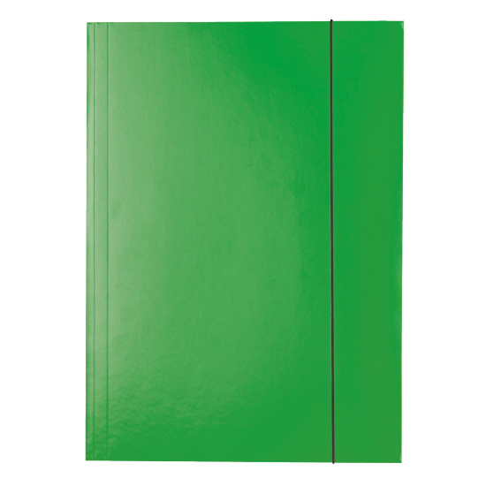 Teczka na dokumenty o formacie A4. Zamykana elastyczną gumką. Wykonana z mocnego kartonu o grubości 400 gsm, barwionego i lakierowanego z zewnętrznej strony. Trzy zakładki chroniące dokumenty przed wypadaniem. Kolor zielony. Jednostka sprzedaży 1 szt.