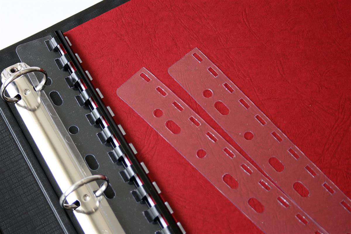 oprawianych grzbietami przeźroczy lub zdjęć, dokładanie