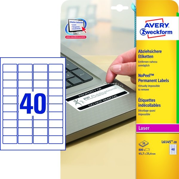 Etykieta L 45,7x25,4(A4/20ark) NO PEEL Avery L6145-20