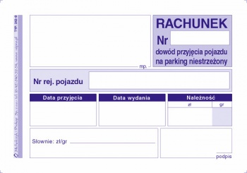 Rachunek-Dowód przyjęcia pojazdu na parking niestrzeżony MP242-9