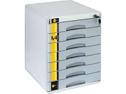 ? metalowa ? zamykana na klucz ? 7 szuflad A4 ? okna opisowe ? wymiary 300x358x405 mm