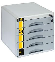 ? metalowa ? zamykana na klucz ? 5 szuflad A4 ? okna opisowe ? wymiary 298x358x306 mm