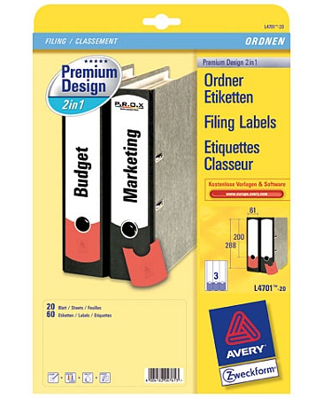 na stronie www.avery-zweckform.pl. Rozmiar 288 x 61 mm.