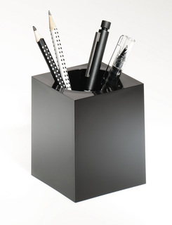 Stojak na przybory z wysokiej jakości tworzywa o klasycznym kształcie. Wymiary: 75 x 90 x 75 mm (S x W x G). Kolor czarny.