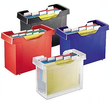 z 5 teczkami, etykietami i kieszonkami na etykiety. Zajmuje