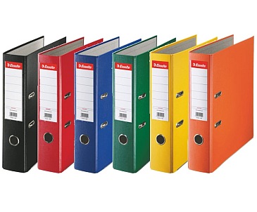 Segregatory ekonomiczne oklejone na zewnątrz trwałym tworzywem, a wewnątrz jasnoszarym papierem. Dwustronna, wymienna etykieta. Format A4. Szerokość grzbietu: 75 mm.