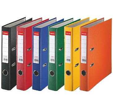 Segregatory ekonomiczne oklejone na zewnątrz trwałym tworzywem, a wewnątrz jasnoszarym papierem. Dwustronna, wymienna etykieta. Format A4. Szerokość grzbietu: 50 mm.