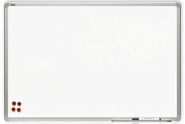 Powierzchnia suchościeralno-magnetyczna, ceramiczna. Rama z profilu aluminiowego, popielata, anodowana. Plastikowe narożniki.