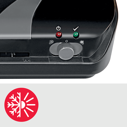 - Umożliwia laminację foliami o grubości od 2 x 75 mikronów do 2 x 125 mikronów.
