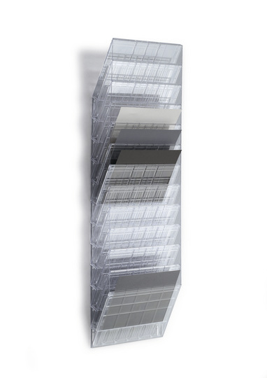 Zestaw 12 pojemników na dokumenty formatu A4 w układzie poziomym. Wymiary: 348 x 620 x 95 mm (SxWxG).