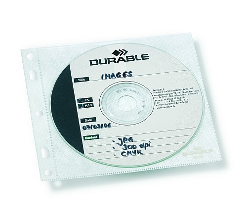 Kieszonka z polipropylenu z powłoką ochronną. Do przechowywania 1 płyty CD/DVD z broszurą lub 2 płyt CD/DVD bez broszury. Z dziurkowaniem do przechowywania w segregatorach.