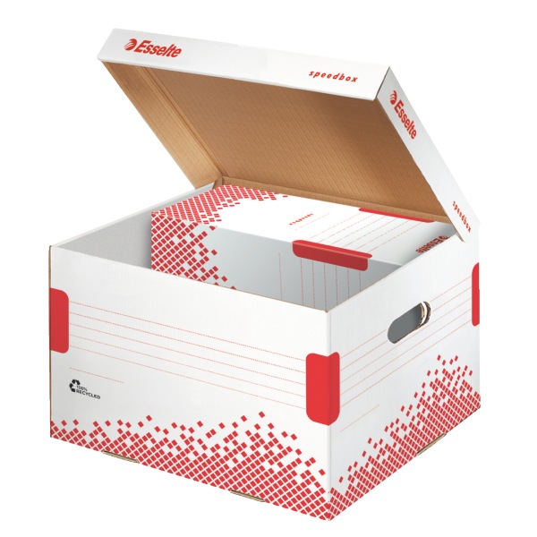 Pudła Esselte Speedbox - nowe rozwiązanie do archiwizacji. Pudła i kontenery Esselte Speedbox zapewniają oszczędność czasu i wysiłku.