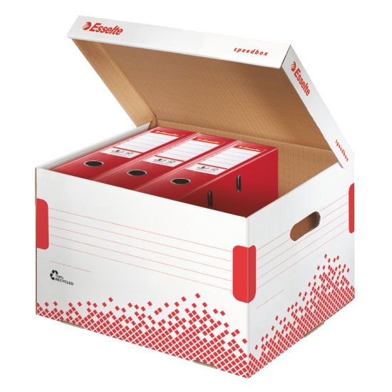 Pudła Esselte Speedbox - nowe rozwiązanie do archiwizacji. Pudła i kontenery Esselte Speedbox zapewniają oszczędność czasu i wysiłku.