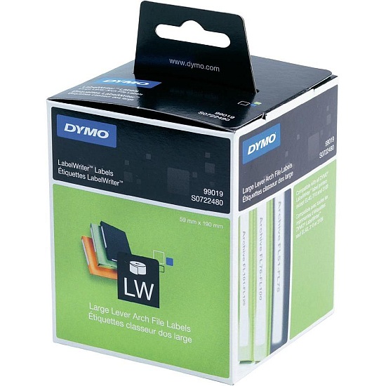 Etykiety papierowe na segregator duży DYMO 99019 na rolce. Do zadrukowywania w drukarkach Dymo. Samoprzylepne. Kolor etykiet biały.
