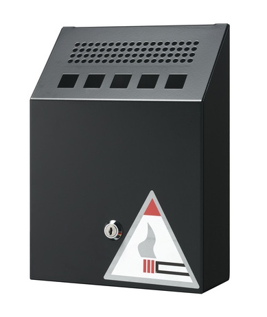 Metalowa popielnica ścienna z powłoką epoksydową. Łatwy do opróżnienia i czyszczenia zamykany pojemnik (w komplecie 2 klucze). Nadaje się do użytku na zewnątrz pod zadaszeniem. Łatwy montaż na ścianie. Pojemność: 2,5 l. Wymiary (wys. x szer. x głęb.): 275 x 205 x 80 mm. Jednostka sprzedaży: 1 szt.