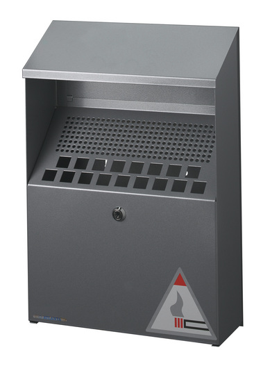 Popielnica ścienna z metalu z powłoką epoksydową. Łatwy montaż na ścianie. Wyjmowany pojemnik wewnętrzny (w zestawie 2 klucze) ułatwia opróżnianie. Nadaje się do użytku na zewnątrz pod zadaszeniem. Pojemność: 4 l. Wymiary (wys. x szer. x głęb.): 450 x 310 x 107 mm. Jednostka sprzedaży: 1 szt.