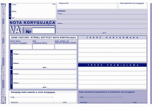 Nazwa: VAT - Nota korygująca.
