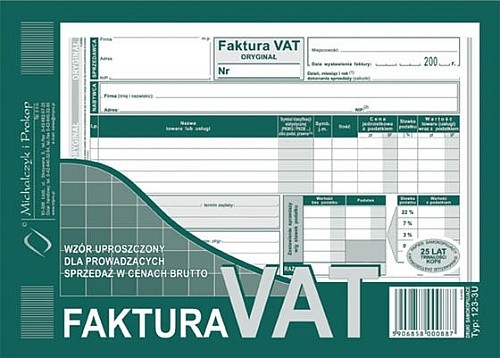 Zastosowanie: faktury VAT i inne (przepisy o podatku od towarów i usług).