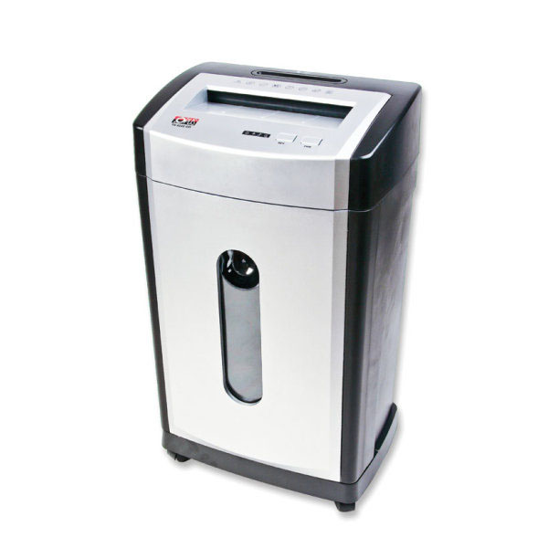 Niszczarka przybiurkowa cross-cut. System paskowo-odcinkowy zapewnia wyższy stopień tajności i kilkakrotnie mniejszą objętość ścinków. Niszczarka posiada specjalną szczelinę do niszczenia płyt CD lub kart kredytowych!