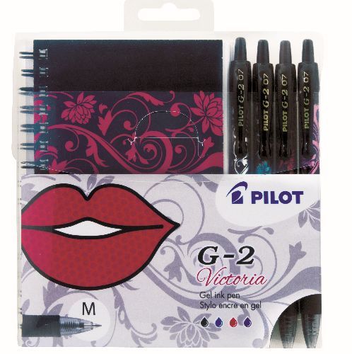Zestaw piór żelowych PILOT G2 (4szt) + notes Victoria