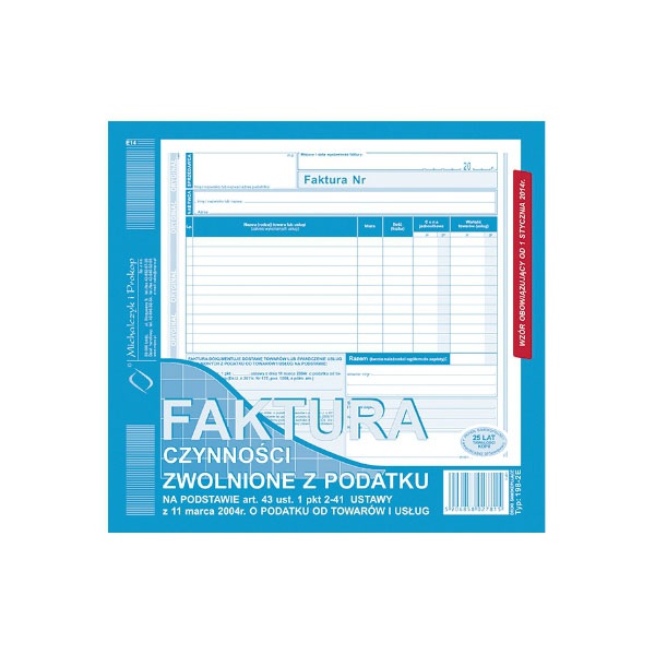 Faktura 2/3 A4 198-2E MP dla czynności zwolnionych przedmiotowo z podatku od towarów i usług