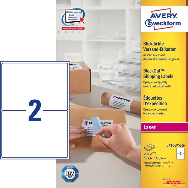Zapewnij swoim przesyłkom profesjonalne wykończenie używając tych śnieżnobiałych etykiet wysyłkowych na wszystkich ważnych przesyłkach. Etykiety wysyłkowe Avery BlockOut to idealne rozwiązanie przy wysyłaniu paczek, pudełek i tub wysyłkowych. Etykiety całkowicie zakrywają tekst pod spodem i pozwalają Ci ponownie używać starych paczek, dzięki czemu możesz zaoszczędzić. Ale to nie wszystko - ekologiczne etykiety Avery pomagają Ci także chronić środowisko.