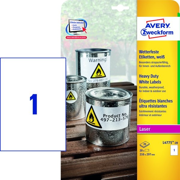 Etykieta Avery 210x297 A4 (a"100ark) LK L4775-100 Heavy Duty wodoodporna