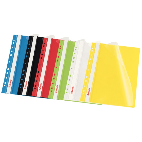 Skoroszyt formatu A4 z paskiem multiperforowanym umożliwiającym wpięcie do każdego rodzaju segregatora. Wysuwany, papierowy pasek do opisu zawartości. Wykonany z folii PP.