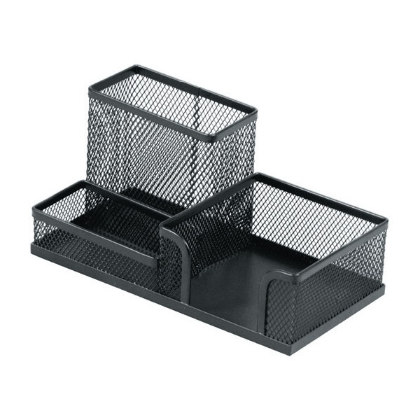 Przybornik z klasycznego zestawu akcesoriów biurowych, zaspokajających nawet najwyższe wymagania. Doskonałe wzornictwo, perfekcyjny wygląd i funkcjonalność to główne cechy tej kolekcji. Wykonany z dziurkowanego metalu. Kolor czarny. Jednostka sprzedaży 1 szt.