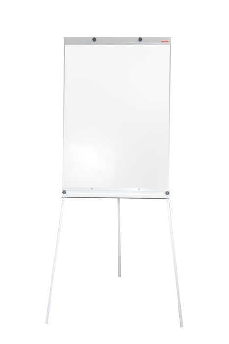 Flipchart BASIC na trójnogu, suchościeralny magnetyczny. Powierzchnia wykonana ze stali lakierowanej o grubości 2 mm w kolorze białym. Rozmiar tablicy 70x100 cm. Regulowana wysokość nóżek (180 cm). Stabilna metalowa konstrukcja, metalowy docisk do papieru, rama plastikowa w kolorze białym. Tył tablicy wykończony okleiną w kolorze białym. Metalowa półka o długości 70 cm. Flipchart przeznaczony do pisania markerami oraz zawieszania kartek za pomocą magnesów.
