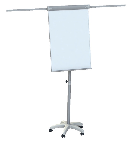 Flipchart mobilny z 2 metalowymi ramionami, suchościeralny magnetyczny. Rozmiar tablicy 68x105 cm. Regulowana wysokość (do 220 cm). Stabilna metalowa konstrukcja w kolorze popielatym. Regulowany rozstaw haków z eleganckim metalowym dociskiem do bloku. Flipchart wyposażony w 5 kółek z blokadą. Plastikowa rama i półka na markery o długości 68 cm w kolorze popielatym. Okres gwarancji na powierzchnię - 10 lat. Na produkt - 2 lata.