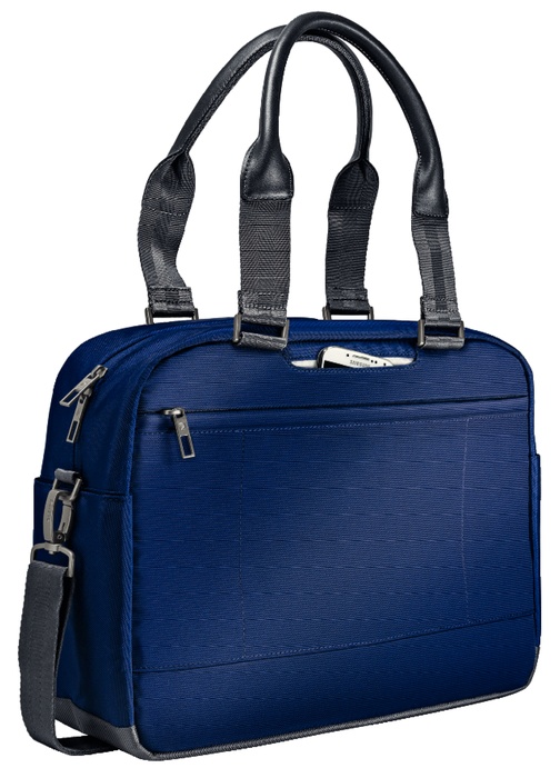 Wysokiej jakości lekka torba z dwiema przegródkami i kieszenią z przodu. Wyróżniające się, efektowne wzornictwo, z wygodnym zamkiem błyskawicznym i eleganckimi metalowymi zapięciami. Z zewnątrz jest czarna, wewnątrz wyróżnia się zielonym kolorem, który pozwala na łatwe odnajdywanie przedmiotów. Miejsce na urządzenia mobilne, laptop 13.3" i dokumenty A4. Posiada usztywnione skórzane rączki, regulowany pas na ramię oraz uchwyt mocujący do wózków lotniskowych.