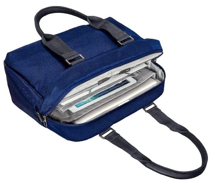 - Usztywniana kieszeń na tablet lub ultrabook z podszewką z weluru chroniącą powierzchnie i ekrany urządzeń.