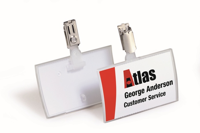 Identyfikator imienny, otwierany, wykonany z polypropylenu z wymienną etykietą do zadrukowania. Elastyczny zawias łączy przednią i tylną część identyfikatora i umożliwia prostą i szybką wymianę etykiety. Dwa wymiary, każdy
