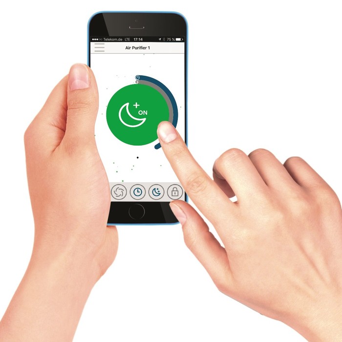 Inne funkcje, takie jak funkcja timera, blokada rodzicielska, status filtra lub dostosowanie trybu automatycznego może być obsługiwane przez urządzenie mobilne za pomocą aplikacji IDEAL AIR PRO.