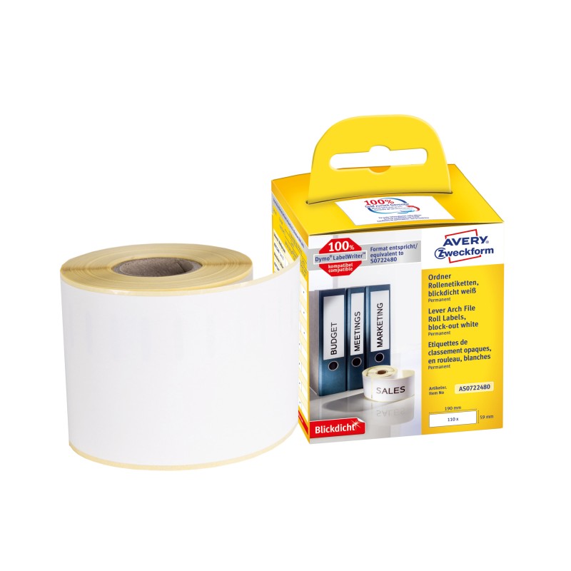 Etykieta AVERY 190x59 AS0722480 na segregatory Biała (a"1x110) w rolce DYMO
