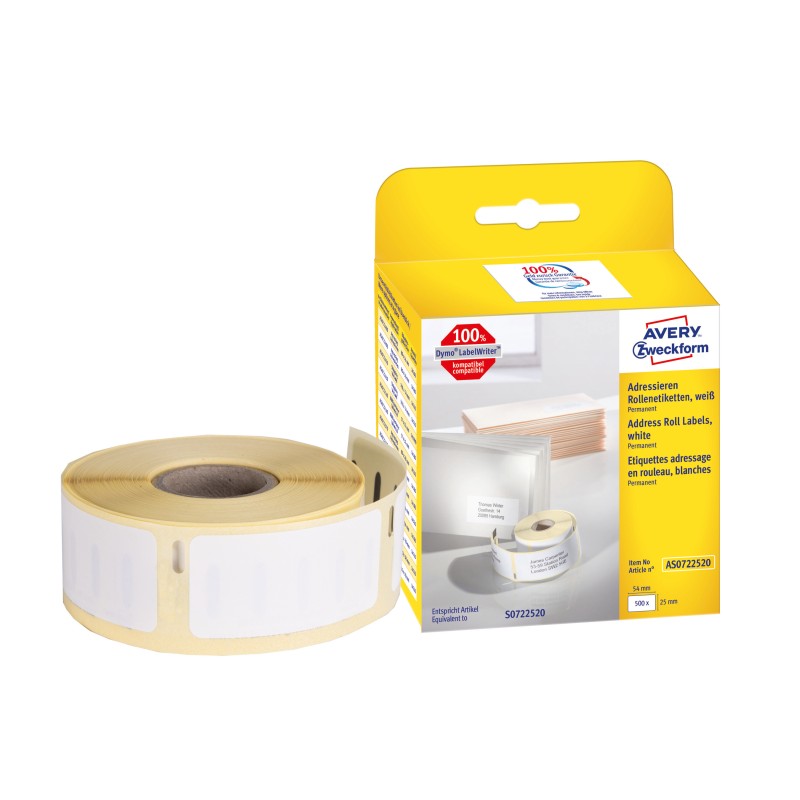 Etykieta AVERY 54x25 AS0722520 adresowa Biała (a"1x500) w rolce DYMO