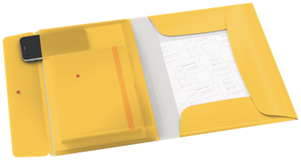 - Dodatkowe zagięcia na klapach pozwalają w razie potrzeby zwiększyć pojemność teczki